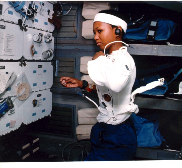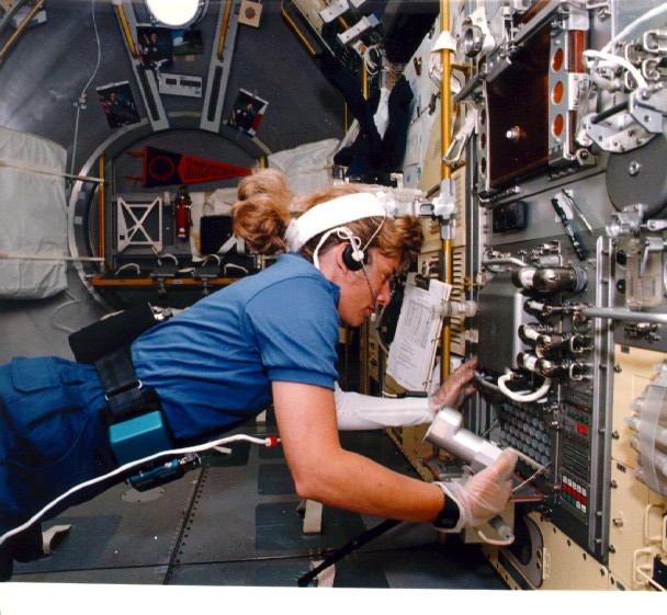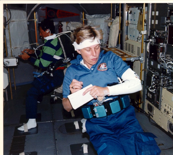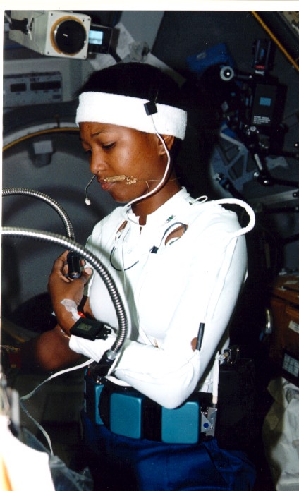 Performing biomedical experiments - this crewmember is both the experimenter and the subject