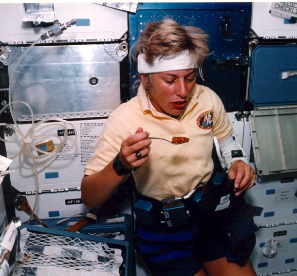 Eating chocolate pudding in space is an acquired skill!